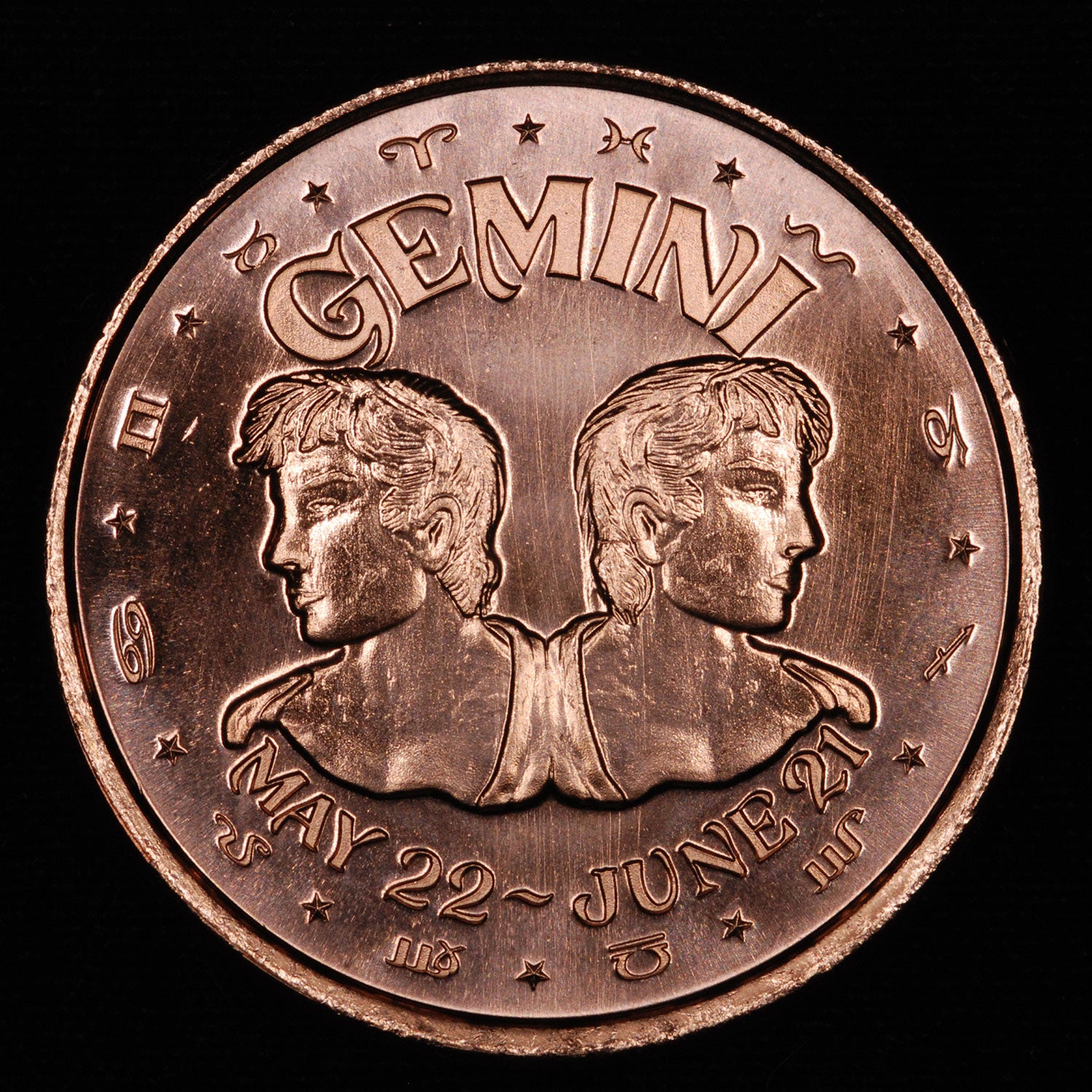 One Ounce .999 fine Copper Round - Gemini Zodiac